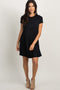 Solid crochet trim shift dress featuring short sleeves and a rounded neckline. Dress is double lined to prevent sheerness.