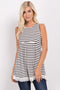 Striped babydoll maternity tank top featuring a crochet trim hemline and a rounded neckline.