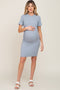 A ribbed knit dress featuring a rounded neckline, short sleeves and a ruched side.
