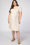 A solid ribbed short sleeve maternity plus dress with scoop neckline and tiered body.