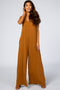 A solid hued, sleeveless jumpsuit featuring adjustable cami straps, a crisscross back detail, wide leg pants, and a v-neckline.