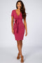 An ultra soft, knit nursing fitted dress featuring a v-neckline with a wrap front and side tie detailing for easy access. Also features short length sleeves.