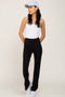 A pair of basic maternity pants in a ribbed material with a slight flare leg.