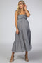 A checkered midi dress featuring a smocked bust, a tiered body, side pockets and a self-tie straps.