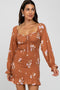 Camel Floral Long Sleeve Smocked Maternity Mini Dress