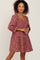Burgundy Floral Squared Neck 3/4 Sleeve Dress