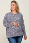 A floral plus size top with a rounded neckline, long drop shoulder sleeves, and side slits at the hem.