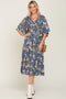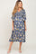 Blue Floral Smocked Flowy Half Sleeve Maternity Midi Dress