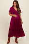 Details A solid satin midi dress featuring short sleeves, a smocked top and a ruffle hem. Skirt is double lined. Content + Care