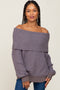 A solid off shoulder sweater with a foldover neckline in a chunky popcorn knit material.