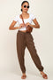 A pair of maternity joggers featuring an elastic waistband, a drawstring accent, side pockets and smocked elastic at the ankles.