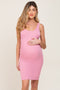 A rib knit maternity dress featuring a scoop neckline.