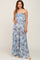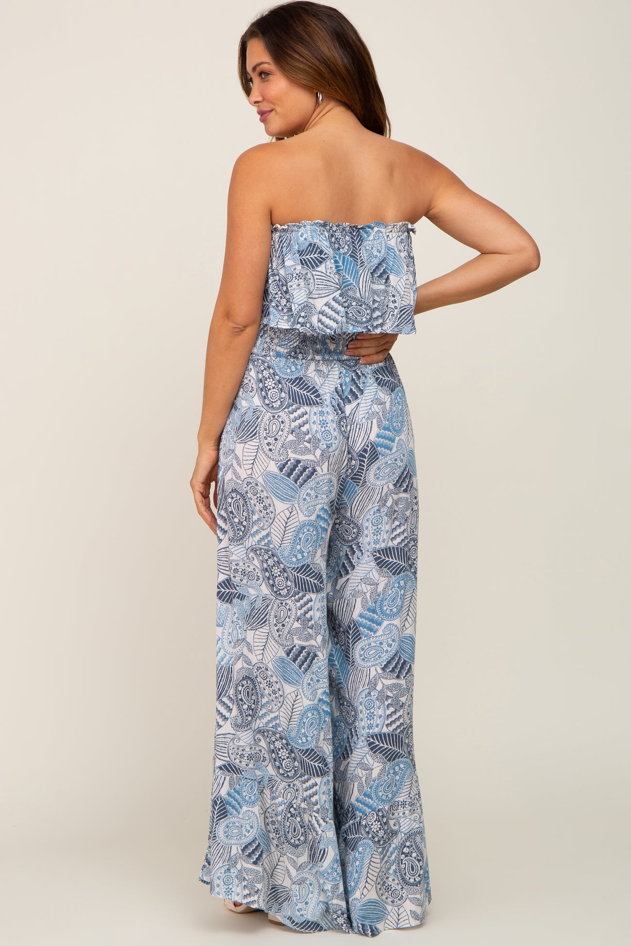 Blue Printed Strapless Ruffle Hem Maternity Jumpsuit
