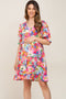 Fuchsia Floral V-Neck Puff Sleeve Dress