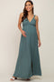 A solid maternity maxi with button accents, a v-neckline, an elastic smocked waist, a front slit, and back cutout. Skirt is lined.