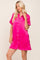 Details A satin dress featuring a collared neckline, a button front, short, cuffed sleeves and side pockets. Content + Care
