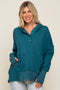 Cream Button Front Ribbed Trim Hooded Sweatshirt