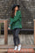 Forest Green Button Front Ribbed Trim Hooded Sweatshirt