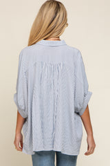 Navy Striped Dolman Button Down Maternity Top
