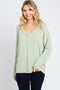 A ribbed knit top featuring a v-neckline and long sleeves.