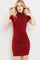 A knit fitted dress featuring a mock neckline and shirt fitted sleeves.