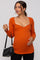 Rust Ribbed Sweetheart Neck Long Sleeve Maternity Top