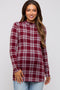 A brushed knit plaid maternity top featuring a mock neckline and long sleeves.
