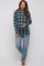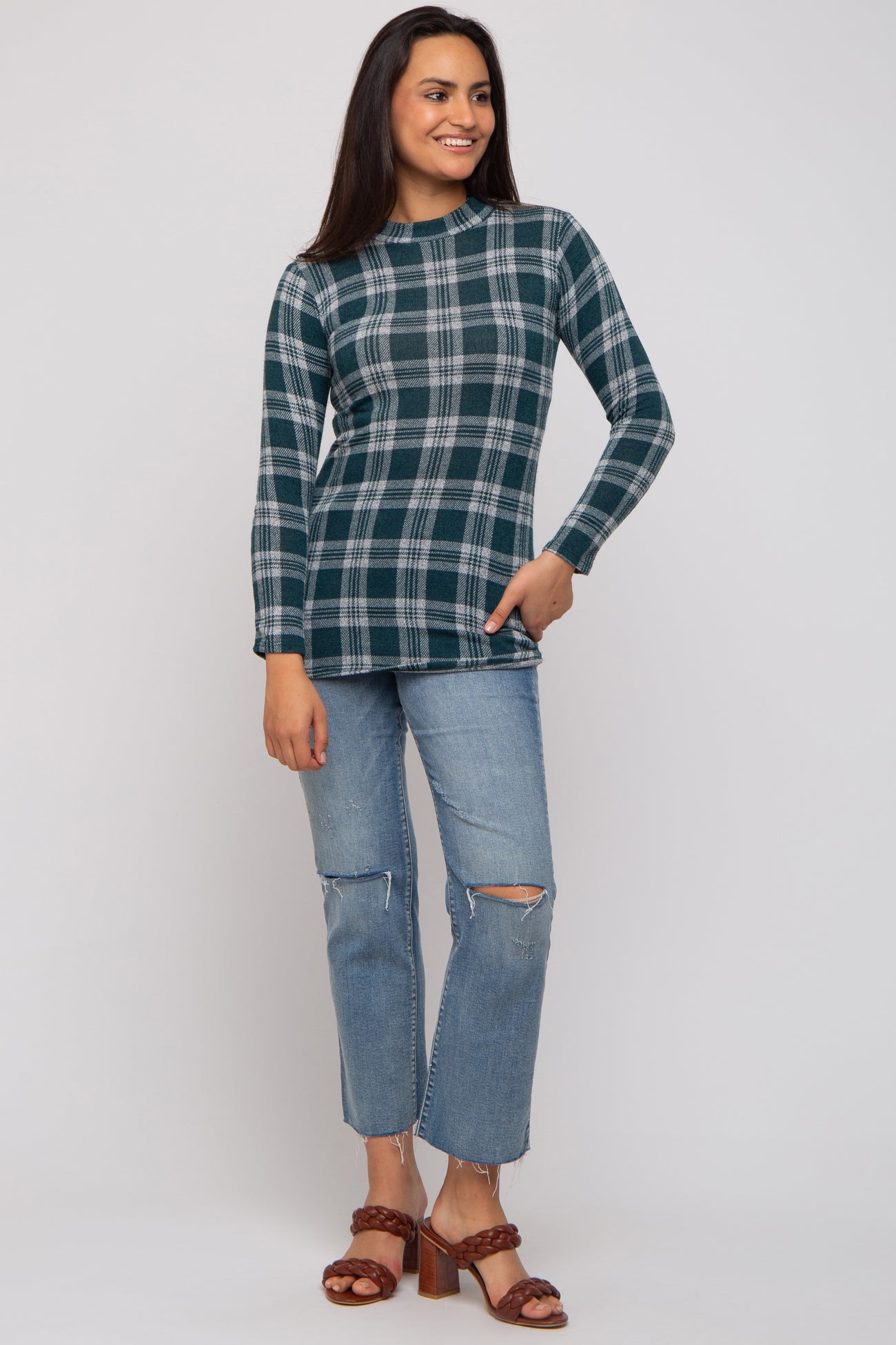 Green Plaid Mock Neck Brushed Long Sleeve Maternity Top