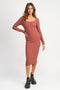 A knit maternity sweater dress featuring long sleeves and a square neckline.