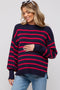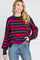 A striped knit sweater featuring a rounded neckline, side slits and long sleeves.