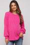 A ribbed maternity top with long sleeves, a rounded neckline, long drop shoulder sleeves, and side slits at the hem.