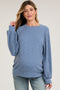 A ribbed maternity top featuring long sleeves and a rounded neckline.
