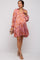 Details A printed maternity dress featuring a collar, a v-neckline, long puff sleeves, and a gathered bottom hem. Content + Care