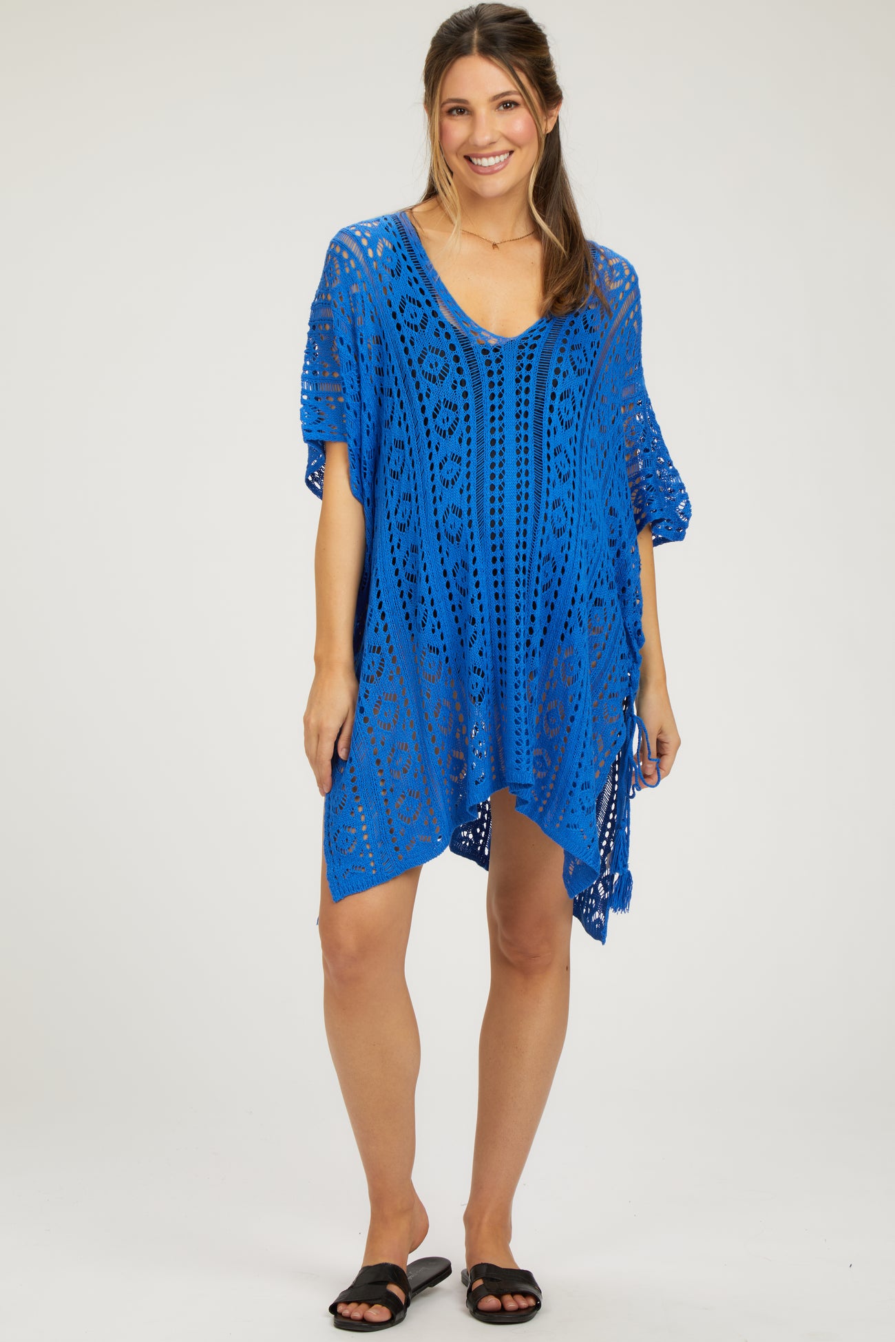 Royal Blue Crochet Knit Maternity Swim Cover Up