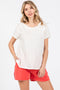 A solid basic short sleeve tee with raw hem detail and boxy fit.