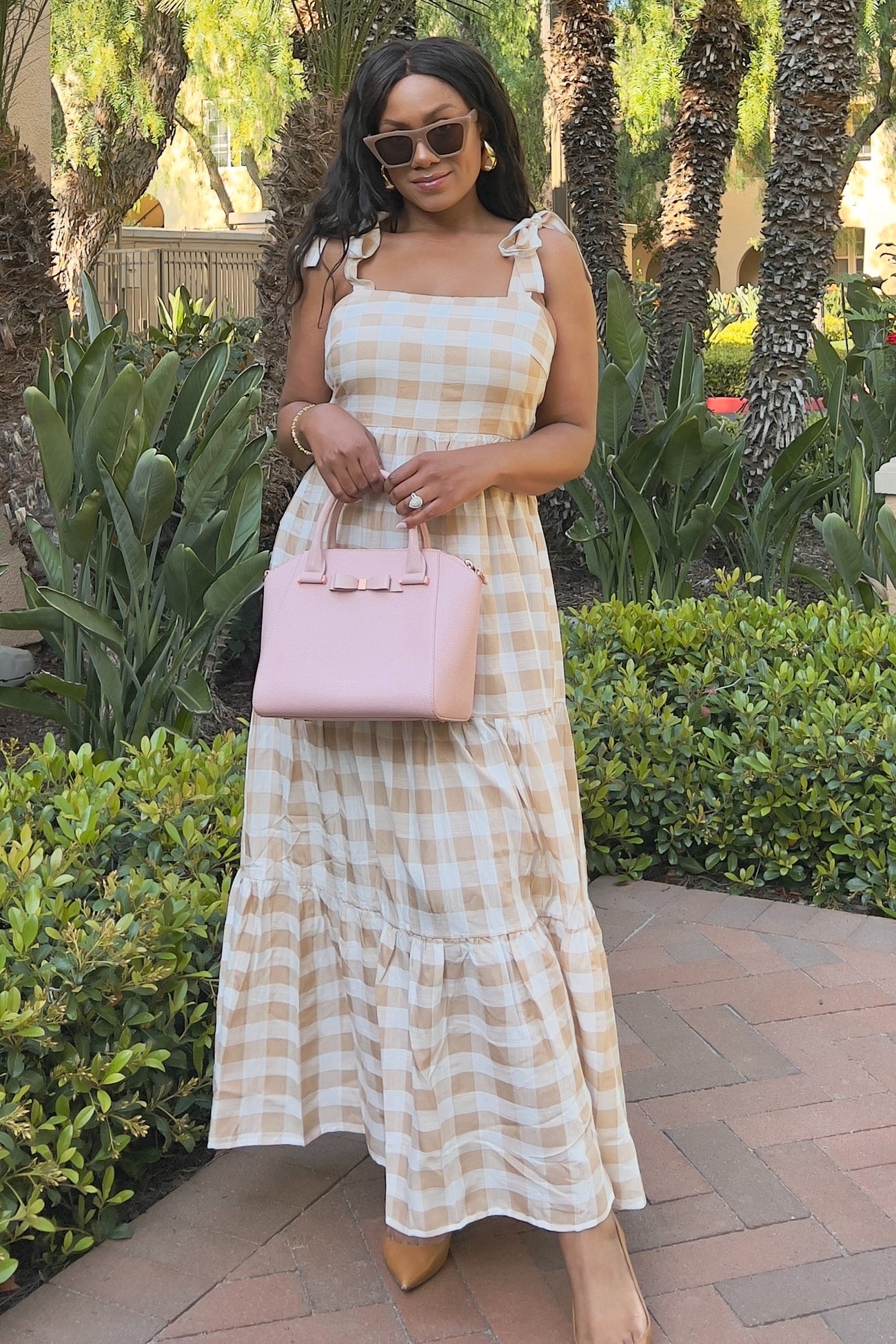 Taupe Gingham Maxi Dress