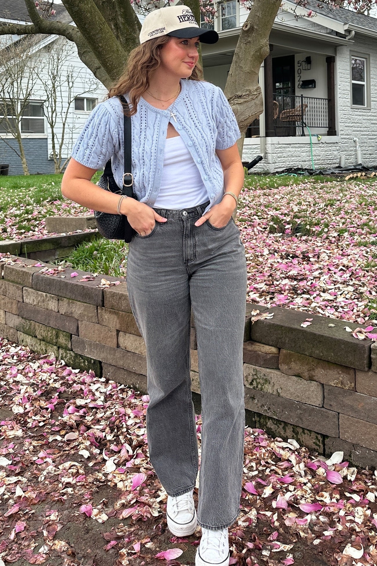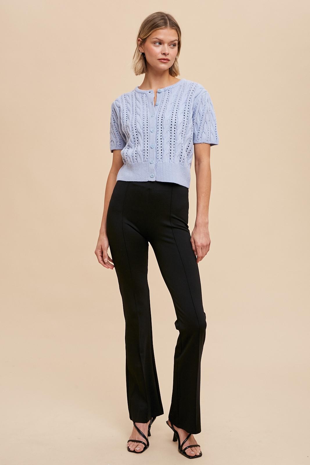 Powder Blue Cable Knit Puff Sleeve Cardigan