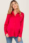 Red Satin Button Down Long Sleeve Top