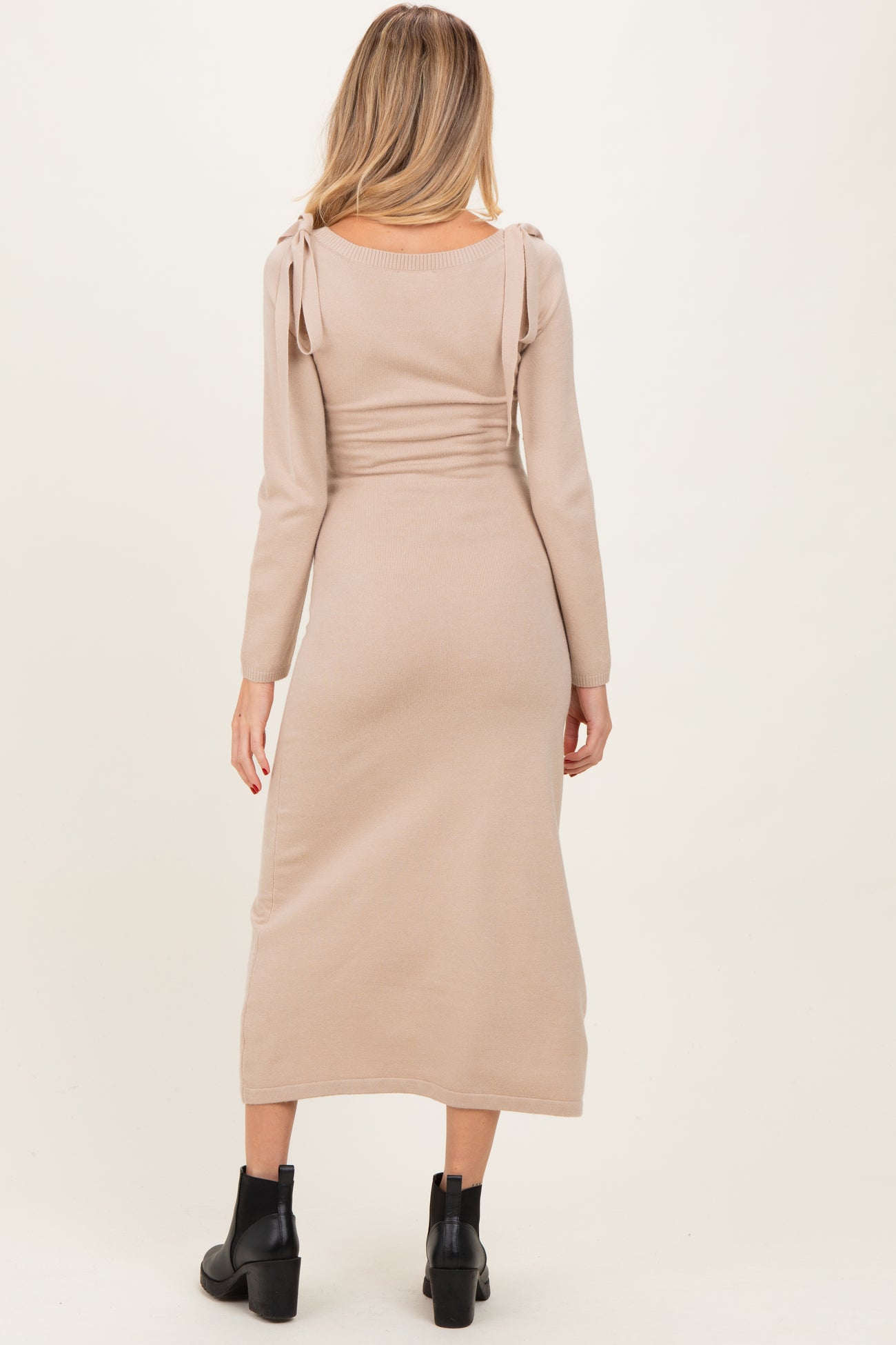 Embrace comfort and style with this Bow Shoulder Maternity Knit Dress, designed to flatter your growing bump while keeping you cozy. Crafted from a soft, stretchy knit fabric, this dress offers gentle support and breathability for all-day wear. The elegant bow detail on the shoulder adds a feminine touch, perfect for both casual outings and special occasions. Featuring long sleeves and a modest midi length, it provides warmth and coverage during cooler days. Pair it with ankle boots or flats for a chic maternity look that effortlessly transitions from day to night. Easy to wear and versatile, this dress is a maternity wardrobe essential.