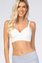 Details A seamless fabric maternity nursing bra featuring a v-neckline, padded bust, adjustable strap with a nursing clasp, and a hook and eye back closure. Content + Care