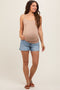 Beige Corduroy Front Pleated Wide Leg Maternity Overalls