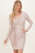 Beige Ribbed Long Sleeve V-Neck Wrap Midi Dress