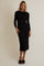 Black Boat Neck Ruched Long Sleeve Midi Dress