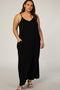 Details A solid hue maternity plus maxi dress featuring, a V-Neck, adjustable cami straps and side pockets. Content + Care