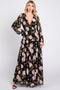 Black Floral Chiffon V-Neck Lettuce Edge Tiered Maternity Maxi Dress