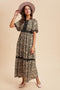 Black Floral Crinkled Texture High Neck Maternity Long Sleeve