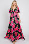 Black Floral Flounce Sleeve Maternity Maxi Dress