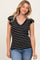 Black/Ivory Stripe Ribbed Ruffle Sleeve V-Neck Top