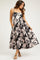 A satin leaf print maternity midi dress featuring a square neckline, adjustable cami straps, a back zipper, an empire waist and double lining.