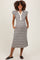 Black Multi-Striped Button Up Ruffle Sleeve Maternity Midi Dress